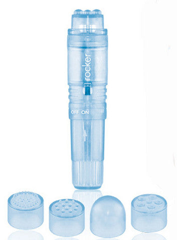 Are you ready to rock and feel the vibes from your temples to your toes? Well, this Rocker is eager to rock your naughty world by influencing you with deep powerful vibrations! With a higher RPM motor than that of the competitors and offering you more powerful for all your desired pleasures. The Rocker is phthalates free for safe fun and comes with 4 fun attachments to choose from, whether it's the smooth or nubby tips, you get options on the teasing or pleasing ahead! And it's waterproof so you can take it into the shower bath or hot tub either way, we promise it wont skip your beat.